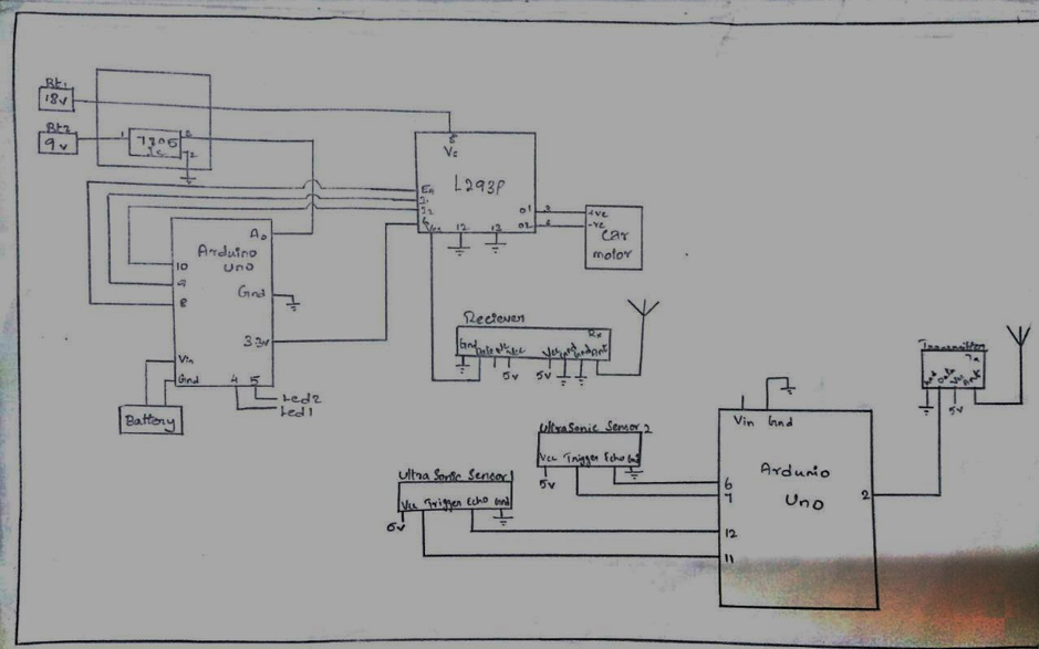 • Arduino UNO • Ultra sonic sensors HC-SR04 • IC 7805 (voltage regulator) • RF 433MHz transmitter- receiver • Motor driver IC L293D • 10 K ohm Potentiometer • A car • Remote case • Bread board • Jumper wires