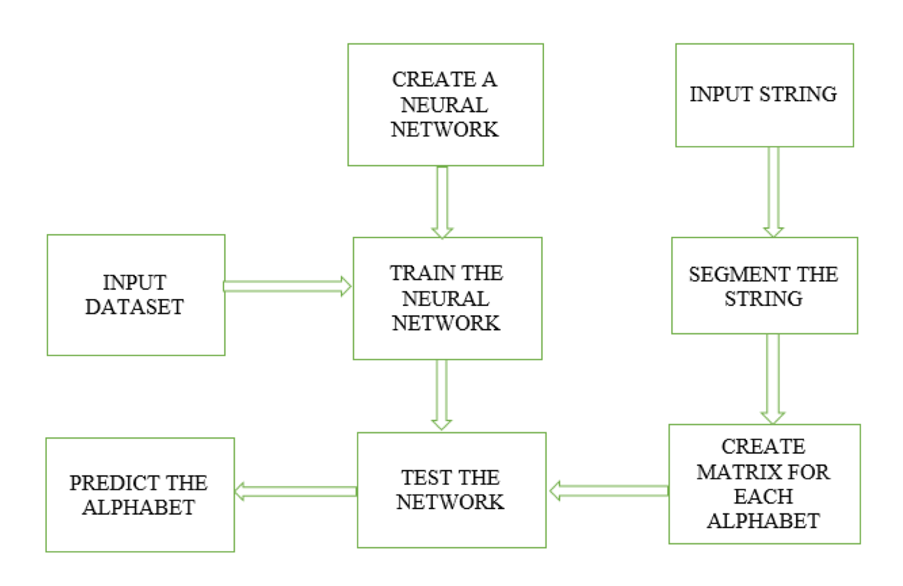 This module matches the handwritten alphabets present in a dataset. This application takes a string as input and segments the string into separate alphabets. Matrix is formed for each alphabet. A feed forward neural network is created using neurolab. The feed forward neural network is trained with a part of the dataset and is tested with the alphabets present in the input. The neural network predicts the alphabets that matches the alphabets in the input string.